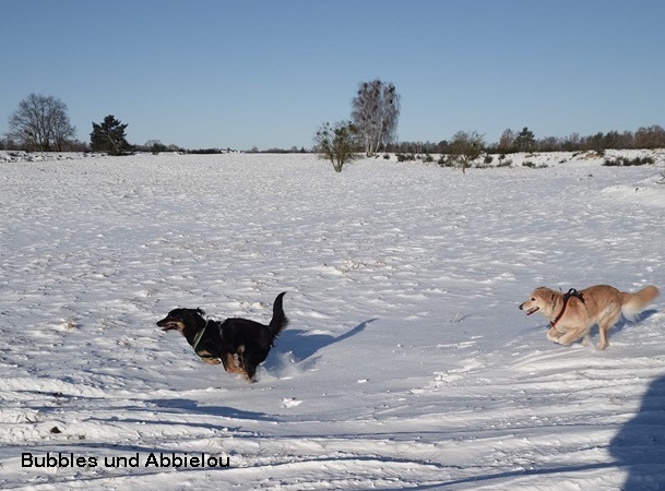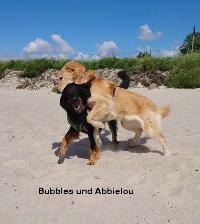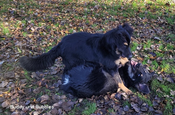 Da wir für Belle noch auf der Suche nach der passenden Familie sind, unternehmen wir mit ihr natürlich so oft es geht etwas allein. Zum Toben geht es daher ab und zu zu Schwester Bubbles. Auch nutzen wir den nahe gelegenen Forst, um Belle andere Tiere, Untergründe und Brücken zeigen zu können.