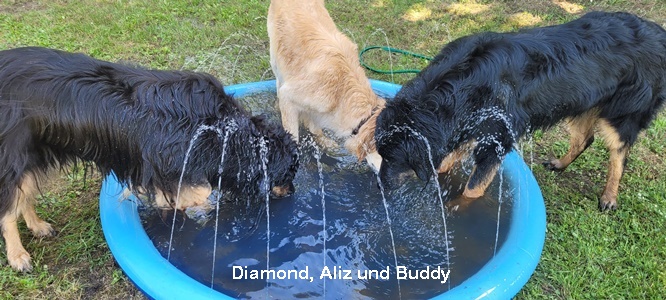 Buddy hat bei Mama Aliz das Seepferdchen gemacht und Bubbles hatte Schwimmunterricht bei Oma Diamond.